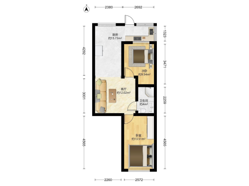 房屋戶型: 2 室2廳 1 廚1衛(wèi)